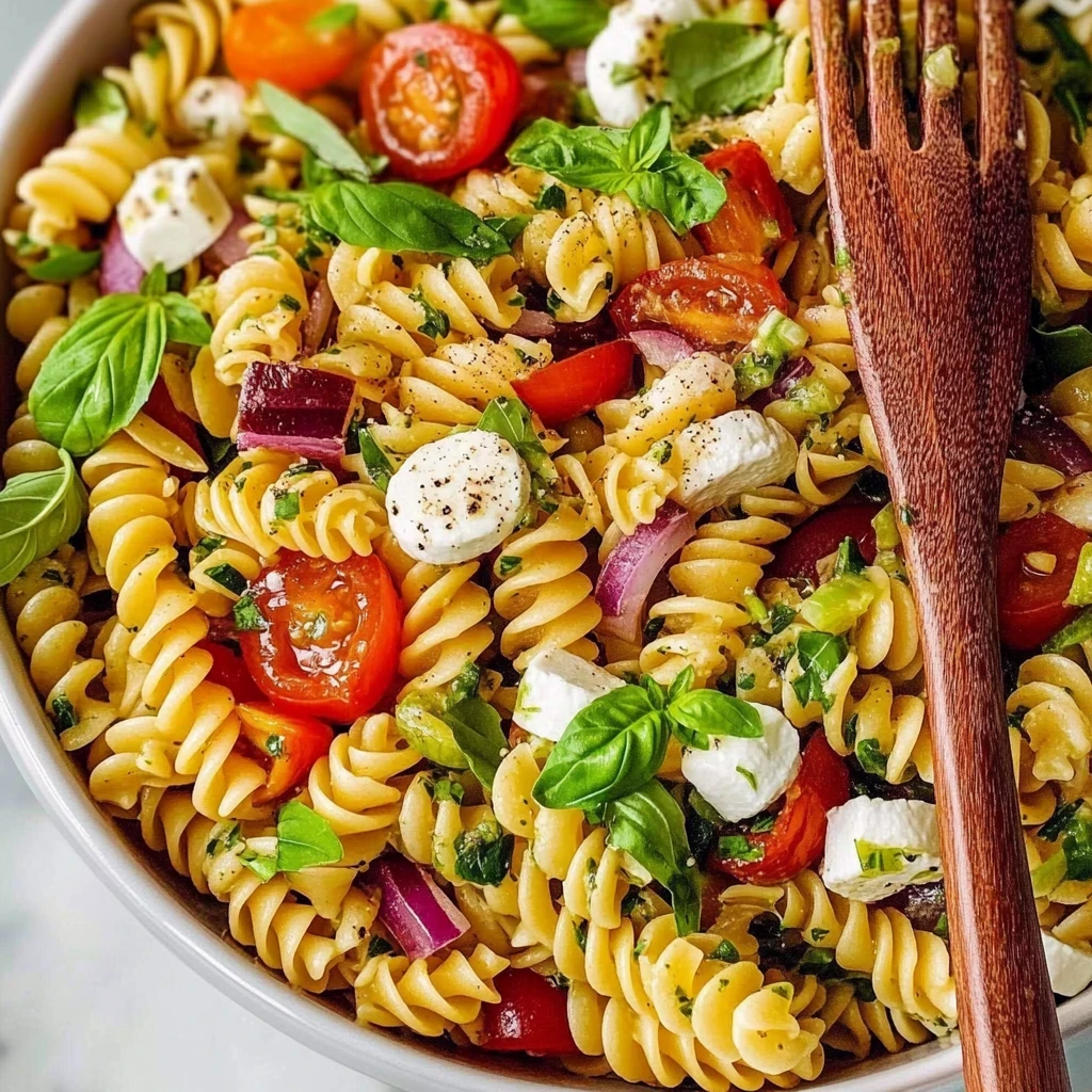 Imagine a vibrant bowl of Italian pasta salad, bursting with colorful cherry tomatoes, crunchy cucumbers, and creamy mozzarella, all dancing together in a zesty Italian dressing. The fresh aromas wafting