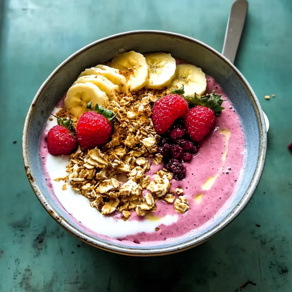 Imagine diving into a vibrant, creamy bowl of pure bliss, where the sweet aroma of ripe bananas mingles with the tangy burst of mixed berries. This smoothie bowl recipe is