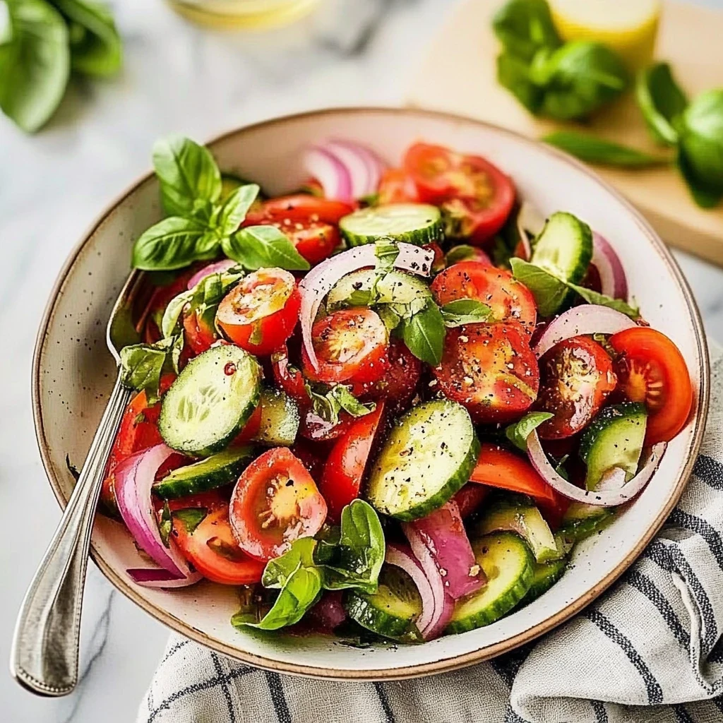Imagine diving into a bowl of vibrant cherry tomatoes, crisp cucumbers, and zesty red onions, all mingling together in a delightful tomato cucumber and onion salad that dances on your