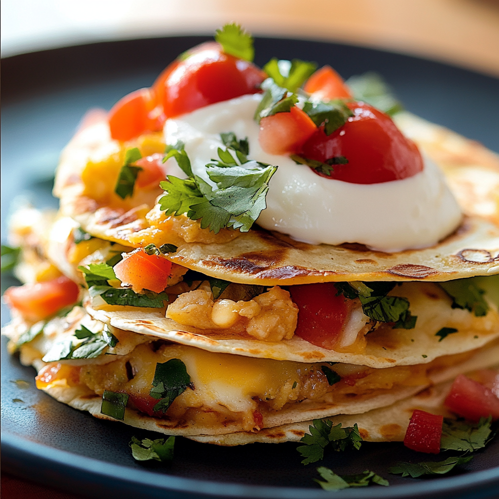 Start your day with a mouthwatering Breakfast Tortilla Stack, featuring layers of soft flour tortillas, fluffy eggs, and melted cheese, enhanced with colorful vegetables. This hearty dish is perfect for lazy weekends or quick weekday brunches and can be easily customized to satisfy any palate.