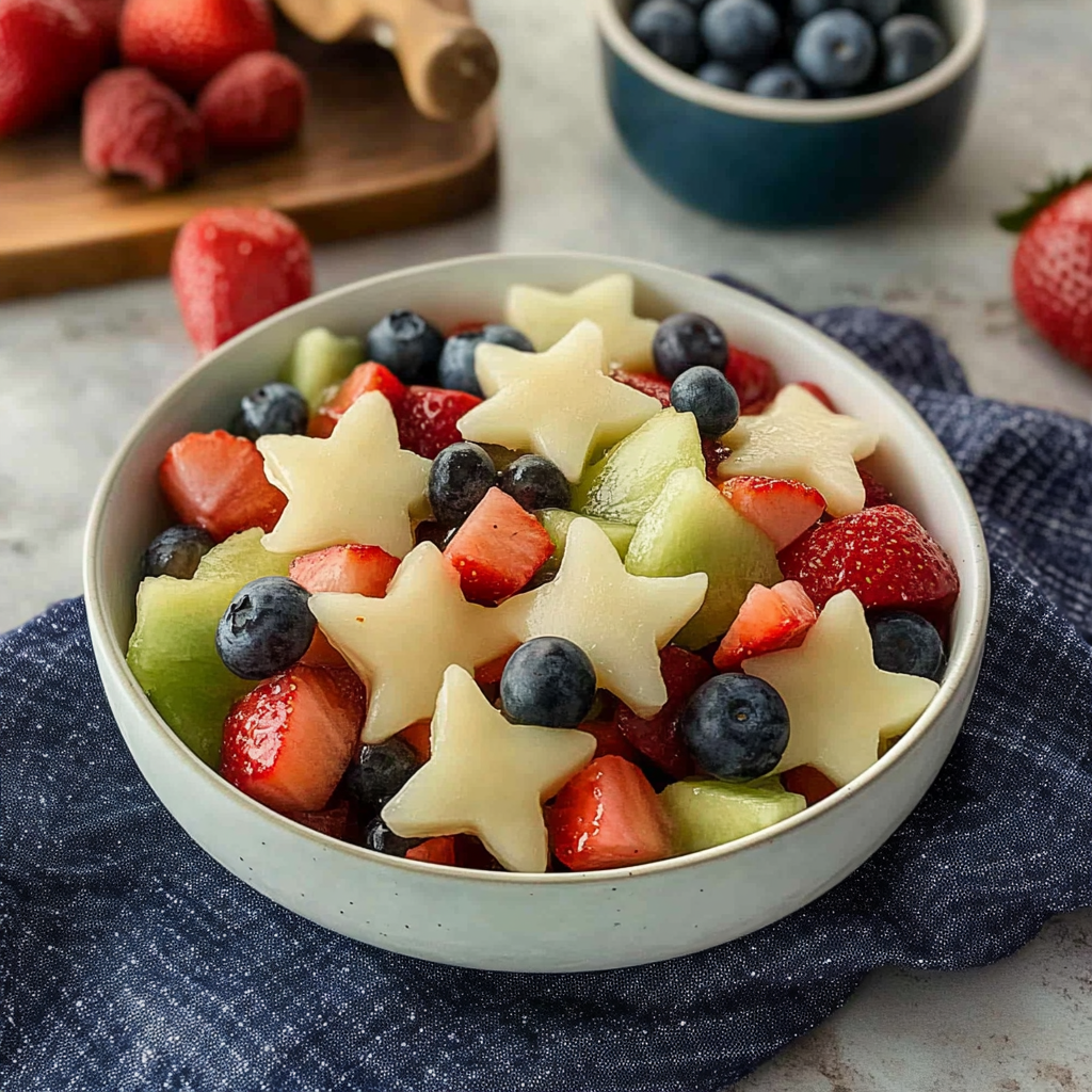 Indulge in a burst of red, white, and blue with this 4th of July Patriotic Fruit Salad. Picture juicy strawberries, luscious blueberries, and creamy whipped topping dancing together in a