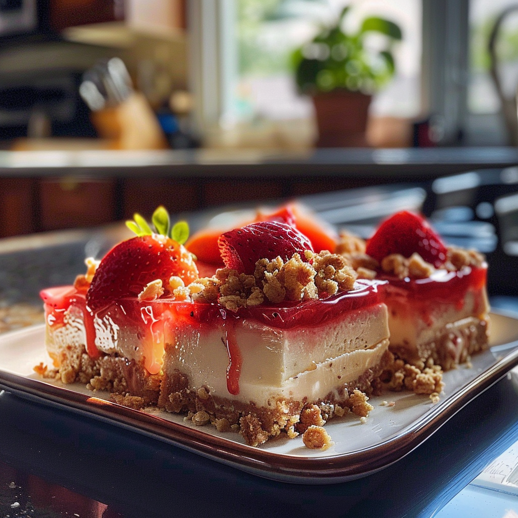 Strawberry Crunch Cheesecake Bites are like little clouds of happiness, bursting with the vibrant flavor of fresh strawberries and the creamy richness of cheesecake. Imagine a dessert so delightful that