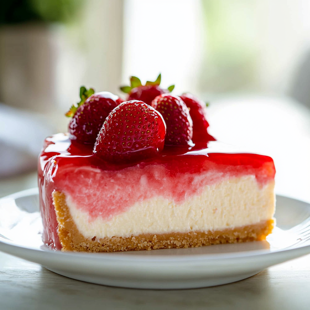This light and fluffy simple strawberry cheesecake is like a sweet hug on a plate. Imagine slicing into its velvety layers as the aroma of fresh strawberries dances in the