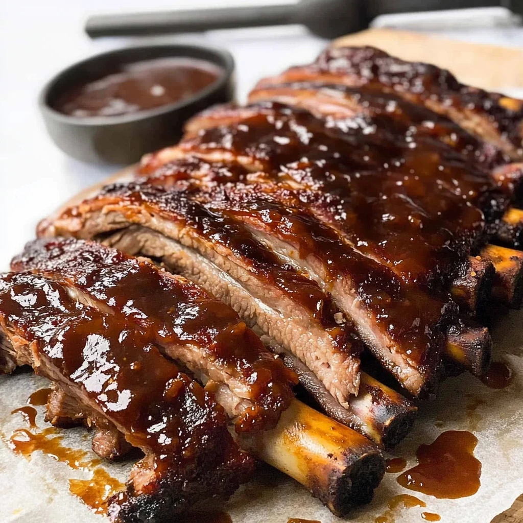 The aroma of slow-cooked bbq ribs wafting through the air is enough to make anyone weak in the knees, as the sweet and smoky flavors dance together like a perfect