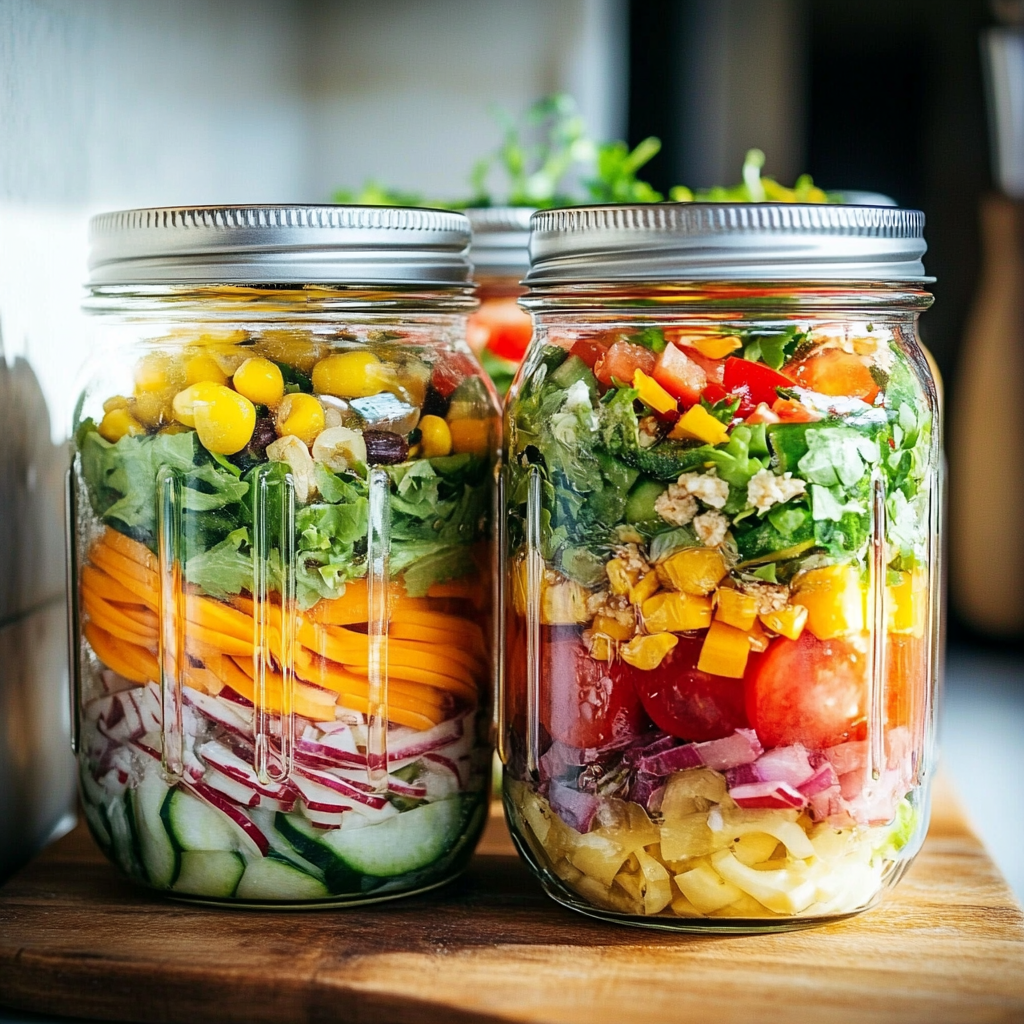 The sun shines bright as I uncork a bottle of dressing, ready to unleash a colorful explosion of flavor from my Mason Jar Salads. Picture this: crisp greens dancing joyfully