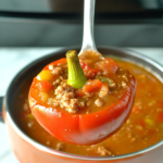 Warm up with this Hearty Stuffed Pepper Soup, the ultimate comfort food for chilly days. This delightful dish features vibrant bell peppers immersed in a savory broth, filled with ground beef, rice, and aromatic herbs. Perfect for weeknight dinners or gatherings, it’s not just a meal but a warm embrace that brings back cherished family memories. Enjoy every spoonful of this cozy classic!