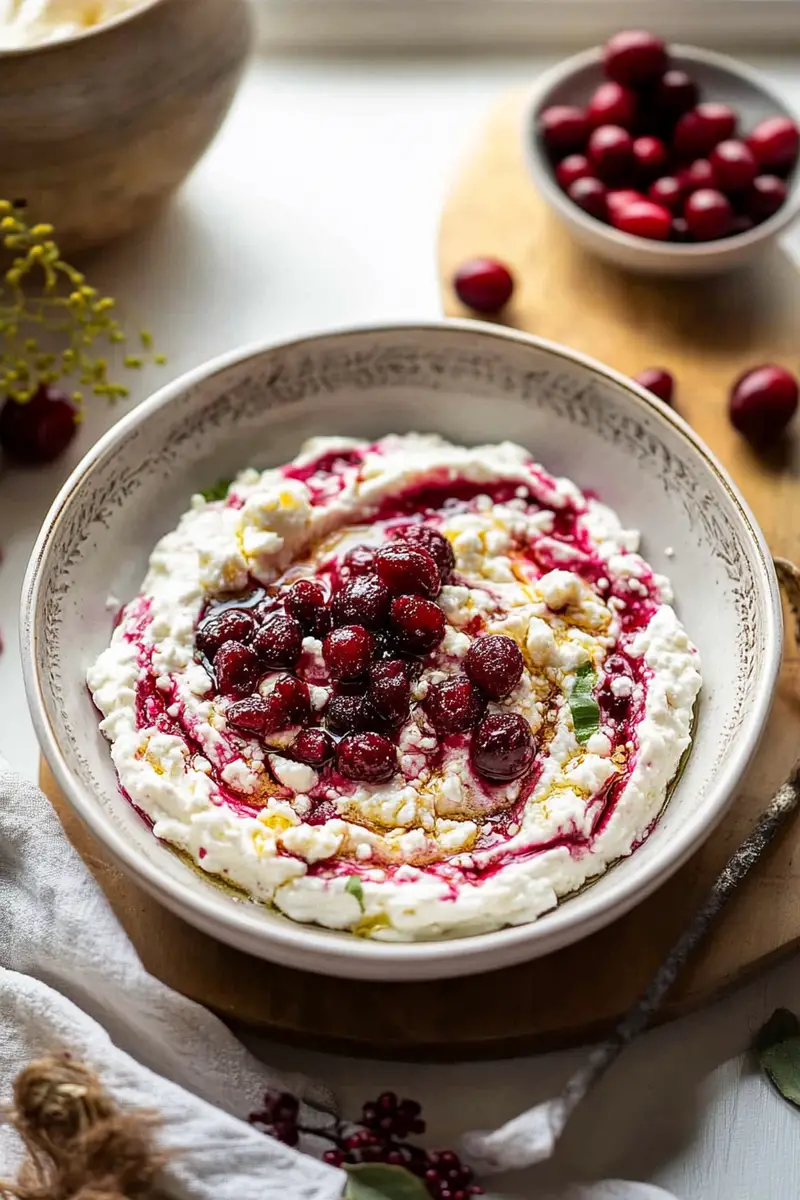 A luxurious blend of tangy whipped feta and sweet-tart cranberries, creating the perfect holiday appetizer. This vibrant dip combines creamy and fruity elements for an irresistible spread that pairs beautifully with crackers or warm pita.