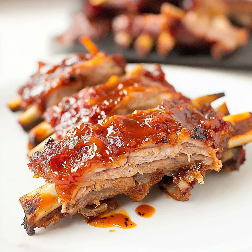 Imagine sinking your teeth into tender, succulent baked ribs that are slathered in a sweet and smoky barbecue sauce, their aroma wafting through the kitchen like a warm hug on a chilly day. The juicy meat practically falls off the bone, creating a delightful mess that begs for napkins and laughter—perfect for family gatherings or weekend cookouts where everyone can dig in and enjoy.
