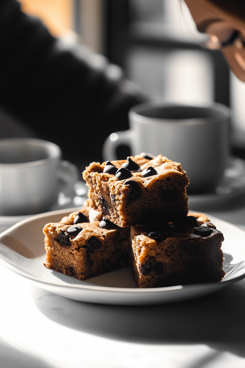 These Chocolate Chip Pumpkin Blondies can be served warm or at room temperature according to preference! Cut them into squares or rectangles depending on how indulgent everyone feels today—perfectly portioned bites await guests eagerly anticipating their first taste! Consider pairing these delightful treats alongside whipped cream dollops or even vanilla ice cream melting atop creating heavenly contrasts between textures—a match made in dessert heaven indeed!