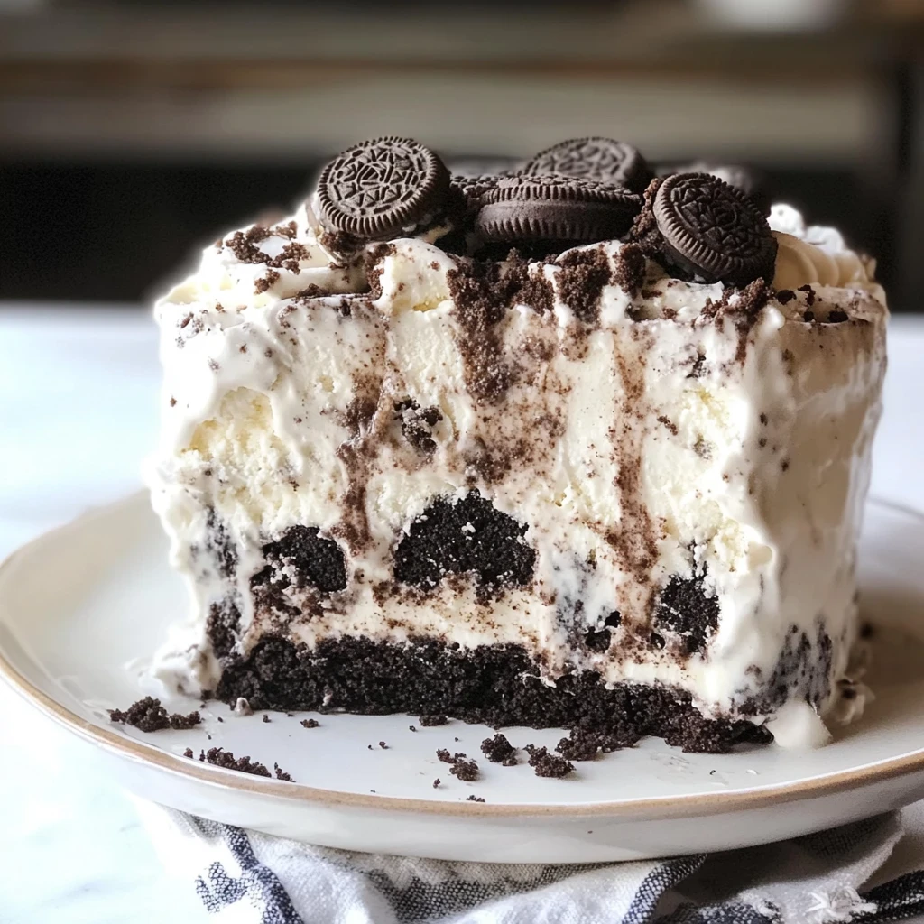 One summer evening, my friends couldn’t get enough of this Oreo ice cream cake; it quickly became our go-to dessert!