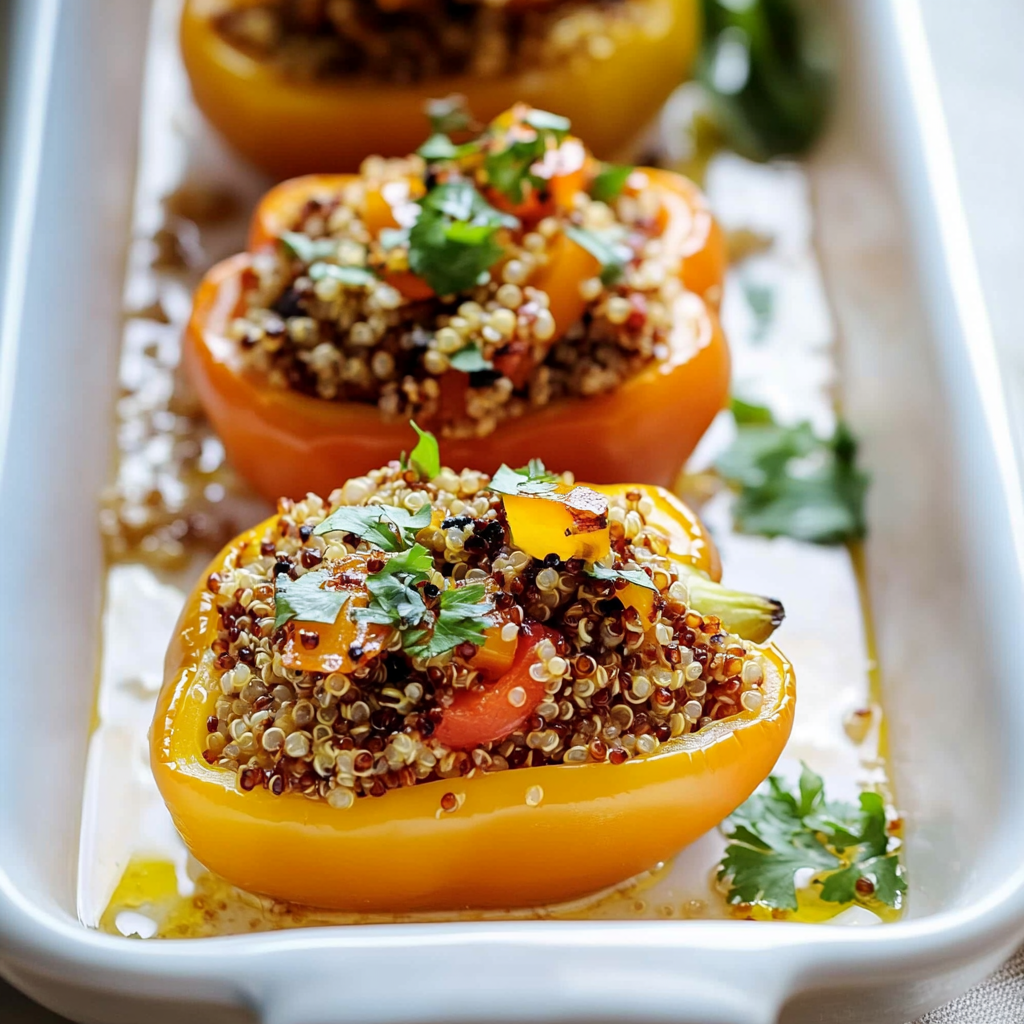 Quinoa-stuffed bell peppers are a delicious and colorful meal option that is both nutritious and satisfying. These vibrant peppers are filled with fluffy quinoa, fresh vegetables, and aromatic spices, making them perfect for any occasion. Easy to customize, they’re sure to impress family and friends while supporting healthy eating habits.