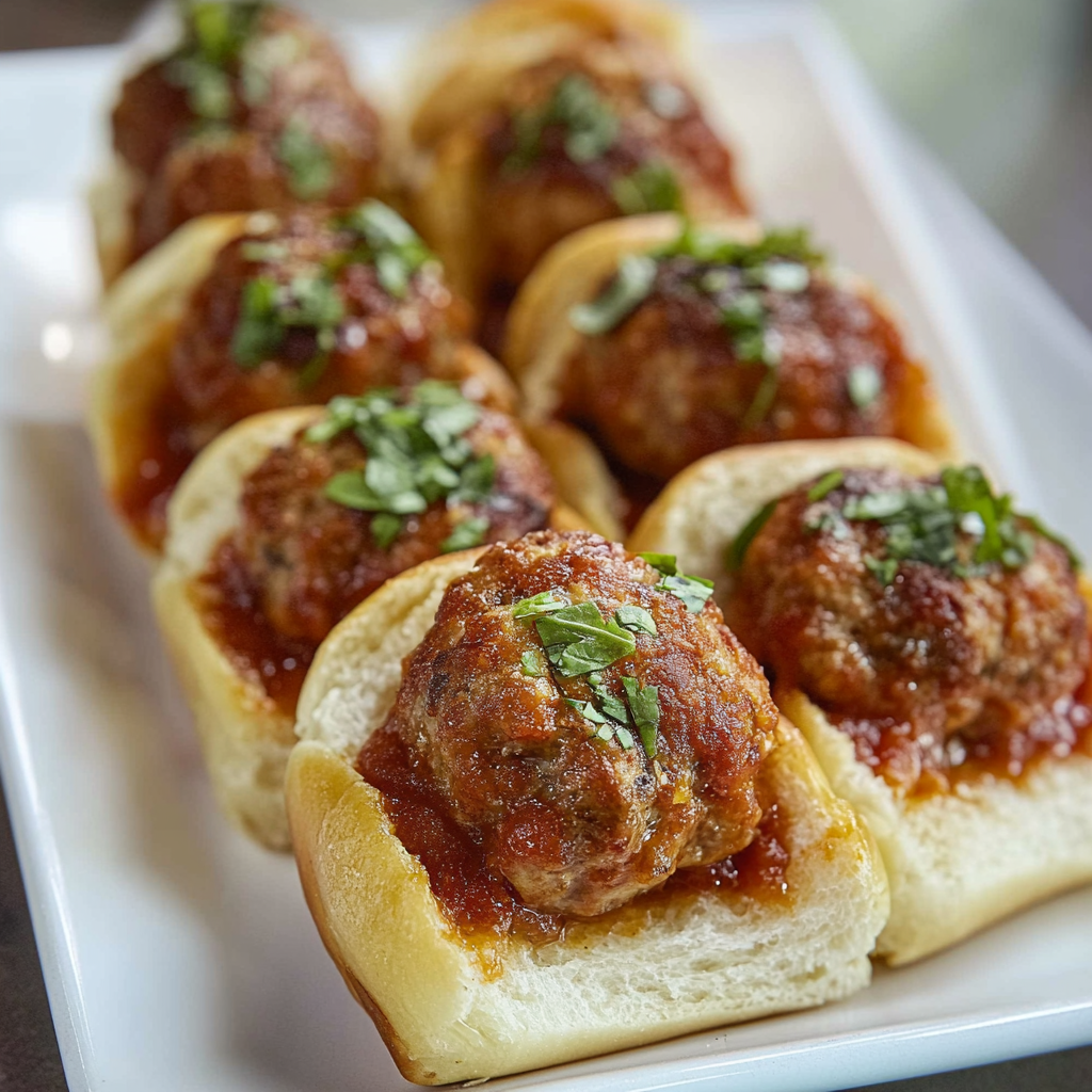 Meatball Slider Bites are an irresistible appetizer that features juicy meatballs, melted cheese, and zesty marinara sauce nestled in soft slider buns. Perfect for any gathering or a quick family dinner, these sliders promise to satisfy every craving and keep guests coming back for more.