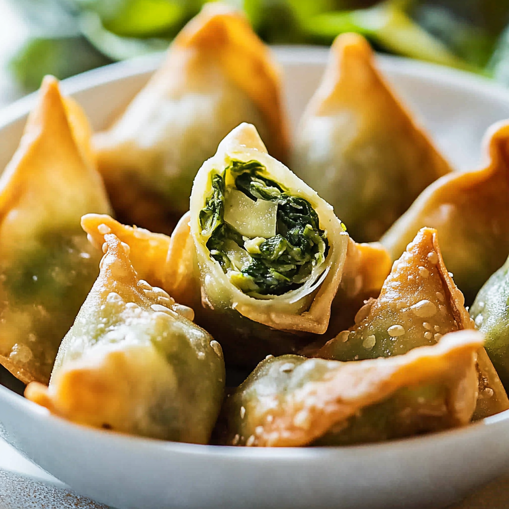 Start by sautéing the spinach and artichokes to enhance their flavors. Then, assemble the wontons using fresh wrappers, and fry or bake until golden brown for crispy perfection.
