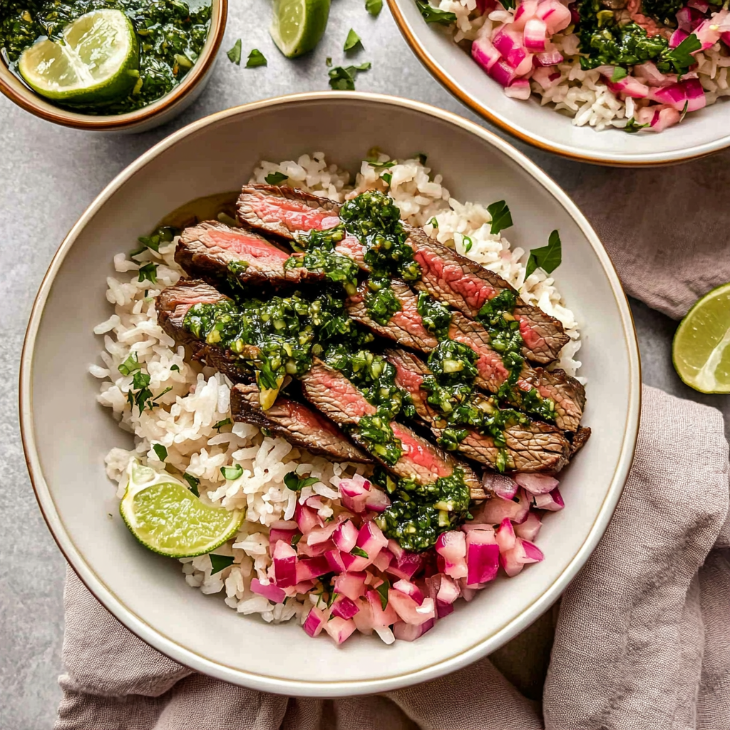 Skirt Steak Rice Bowls with Chimichurri Sauce