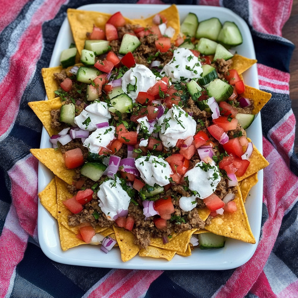 Greek nachos are a vibrant and flavorful twist on the classic snack, perfect for game day or gatherings. Made with crispy pita chips and topped with fresh ingredients like cherry tomatoes, cucumbers, and crumbled feta cheese, they offer a delightful Mediterranean experience. Drizzled with creamy tzatziki sauce and sprinkled with oregano, these nachos are not just delicious; they’re a feast for the eyes too! Easy to prepare and customizable to your taste, Greek nachos will surely be the highlight of your next event.