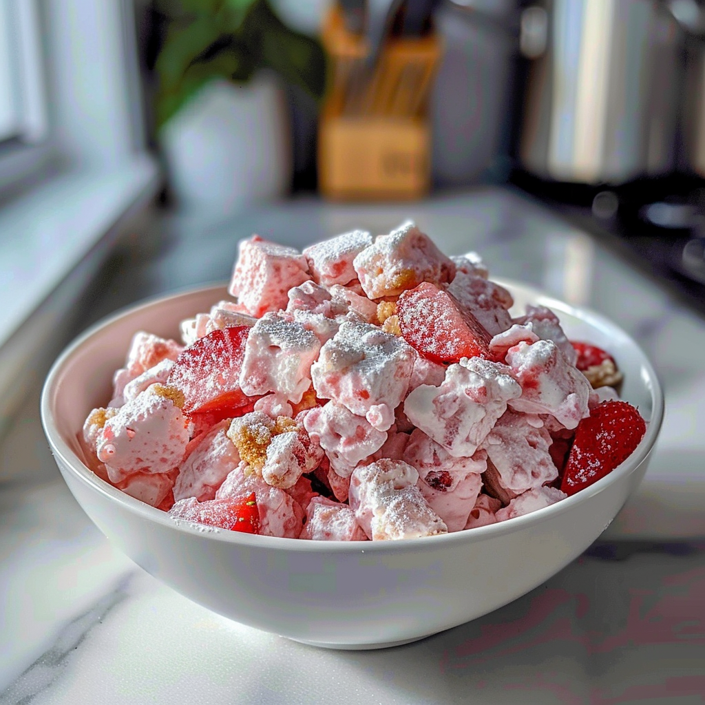 Keywords: - Customize your Puppy Chow with sprinkles or substitute strawberries with blueberries for a different twist. - Ensure your chocolate is melted smoothly to avoid burning for the best flavor impact.