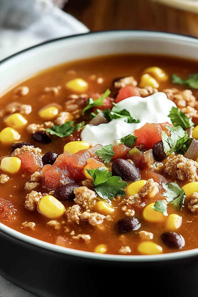 In addition to being straightforward and delicious, this soup is packed with nutrients from colorful veggies like bell peppers and corn. Top each serving with shredded cheese, sour cream, or fresh cilantro for an extra burst of flavor. So gather your ingredients and let’s dive into how you can make this fantastic Slow Cooker Taco Soup at home!